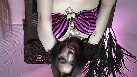 un cascadeur aux gros seins attaché et donnant une bonne tête