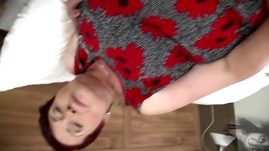 la grand-mère aux cheveux roux anna se gargarise avec un faux pénis et montre des nichons et des nichons