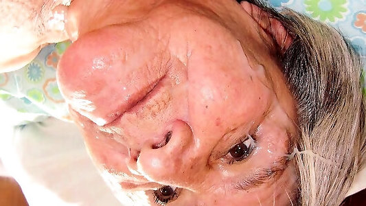 il y a beaucoup de sperme sur le visage de foxxy, 60 ans