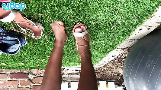 dagfs - ladorable ébène noemie bilas chevauche une bite laiteuse en plein air
