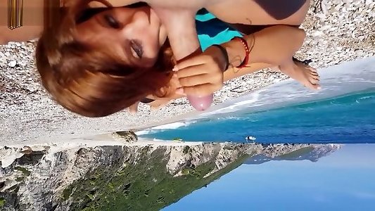 sur la plage en grèce, elle suce et saute sur la bite de son beau-père