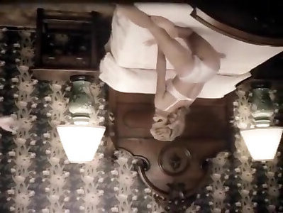 fillefille aux fesses moelleuses en sous-vêtements se fait pilonner le doigt de sa chatte poilue sur le lit