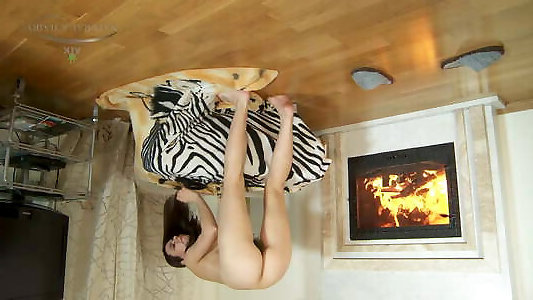 magnifique fleur vierge laineuse se masturbe sur sa table en bois