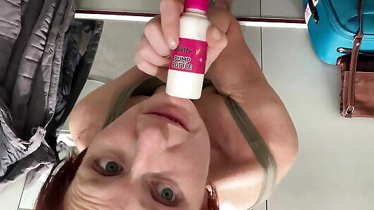 pandabear08 dans la salle de bain jouant avec sa chatte