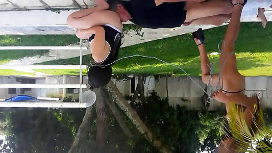 leggings de corde étouffement du cul sur la loggia