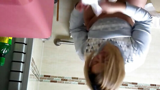 une webcam cachée attrape une femme qui se masturbe avec un gros concombre dans la salle de bain