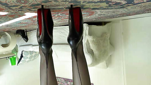 chaussures à talons hauts et collants. essayez de ne pas jouir