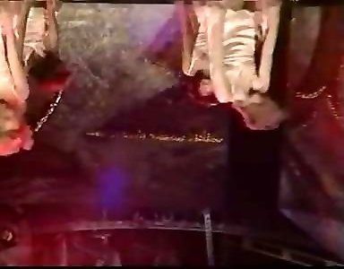brune mince russe aux longues jambes avec de petits seins danse un strip-tease et marche en talons hauts