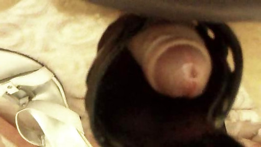 scie et pipe: masturbation de bite avec une chaussure à talon transparente pov