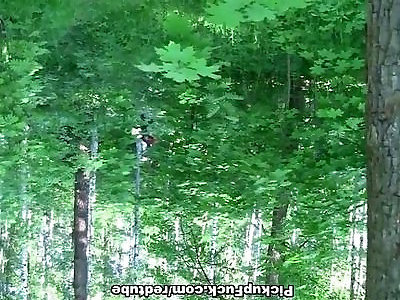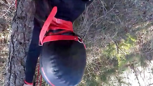 un beau adolescent couguar avec des talons hauts suce un grand arbre avant de se faire clouer