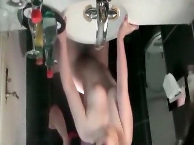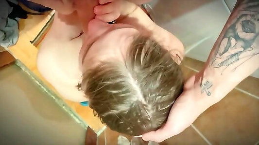 une méga-salope aux cheveux clairs ravagée dans la salle de bain