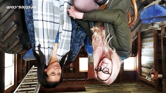 texas twins se déshabille et se chatouille les doigts à trois dans la cour de ferme