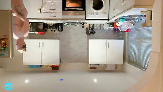 femme de ménage nudiste regina noir cuisine dans la cuisine. une femme de ménage nue fait des boulettes. cuisiniers nus. troisième partie