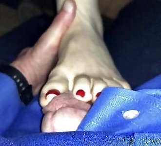 la femme utilise ses beaux orteils cramoisis sur la virilité