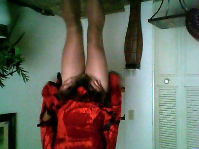 une petite cagoule en caoutchouc rouge met ses pieds en nylon dans votre visage