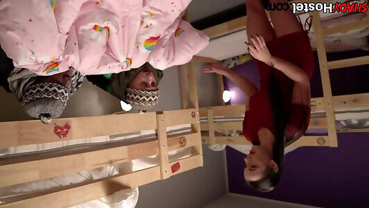 3some hostel babes pussydrilled dans une action ffm après avoir sucé