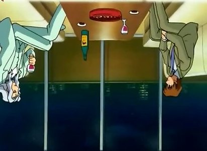 un mec de hentai lourd baise un cascadeur brûlant dans le train en mouvement