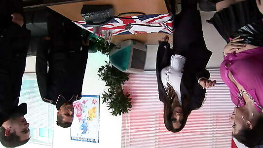 des clochards désordonnés se font éjaculer pour le dîner au bureau
