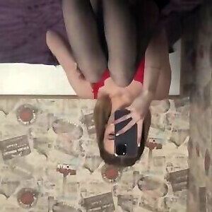 une ado blonde chaude en bas noirs doigte sa chatte mouillée et dégoulinante