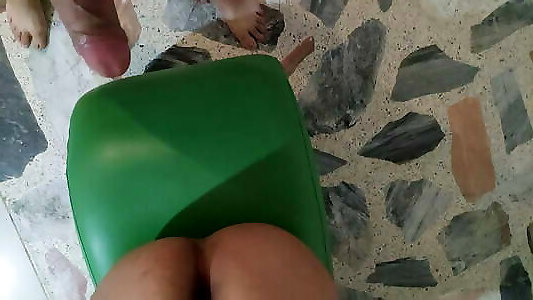 une belle fille en robe rouge a reçu sa portion de sperme directement sur son gros cul!