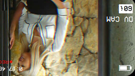 une blonde en collants qui pisse sur les cheveux noirs