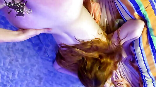 une cascadeuse aux cheveux roux super sexy et inexpérimentée joue avec son orgasme suprême