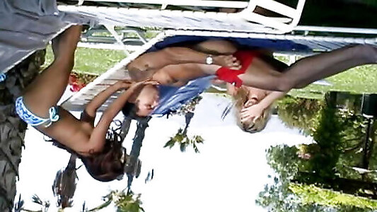 magnifique chatte tâtonnant, avec deux nubiles grésillantes