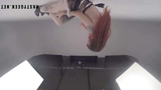 une serveuse aux cheveux roux fait un strip-tease et éclabousse