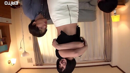 la salope japonaise aux cheveux bruns se fait baiser par un mec sur le canapé