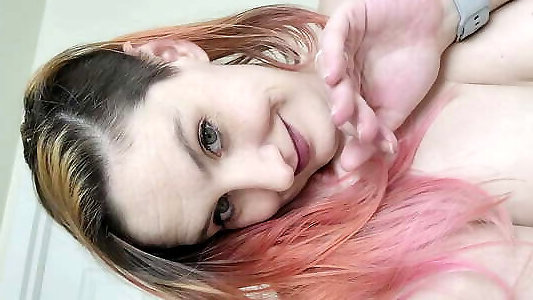 fille blanche au cul de phat avec des cheveux roses se graisse et se masturbe