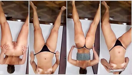 lassistante sexy de la milf brésilienne latina fait un spectacle de strip-tease depuis la douche de son bureau et montre tout son cul