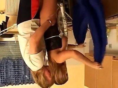 le beau-fils a mis sa main dans le jupon de sa belle-mère faisait le ménage, léchant les aisselles léchant la chatte
