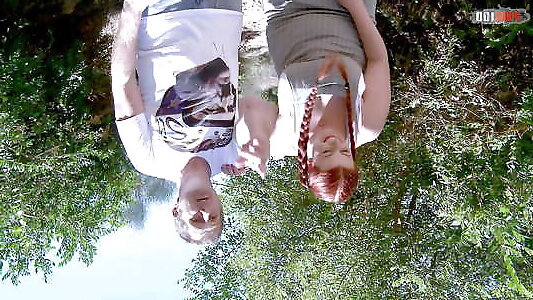 2 lesbiennes minces avec des seins massifs baisent à lextérieur
