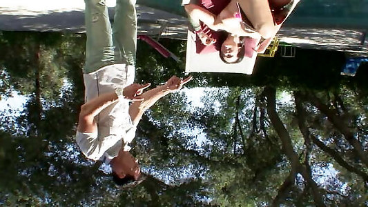 cougar deauxma aux dents énormes masse ses énormes tétons & amp; castor dans une piscine!