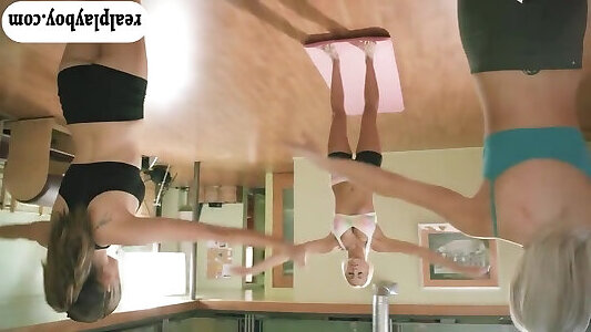 une blonde aux énormes nichons enseigne le yoga de base tout en étant nue