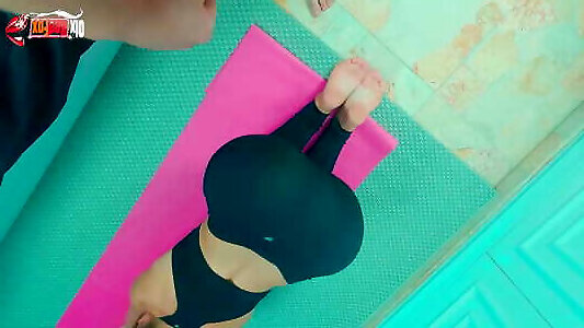 un instructeur de yoga se fait baiser à travers un pantalon de yoga pov