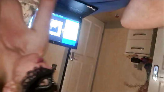 demi-soeur sexy poussant un énorme gode noir au fond du cul de son frère,accrochage de strapon, branlette ballbusting