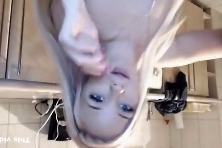 une blonde empilée enfonce un énorme gode au fond de sa chatte mouillée!