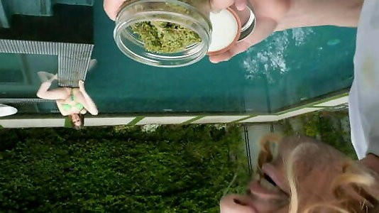 jackie hoff aux seins élastiques tente son petit ami au bord de la piscine