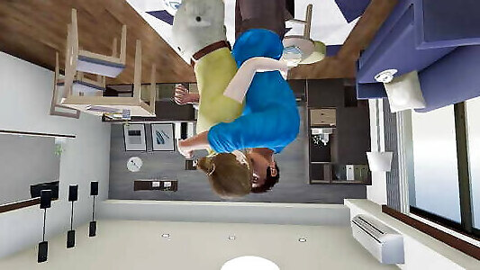 la demi-soeur prenait un bain dans la salle de bain, le demi-frère est allé secrètement et a commencé à avoir des relations sexuelles avec la demi-soeur dans la salle de bain