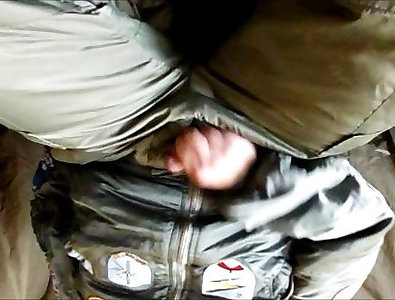 insémination et écoulement sur pantalon en nylon ma1 chaud