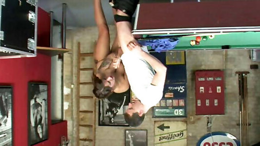 une méga-salope aux gros seins chevauche une bite solide sur la table de billard