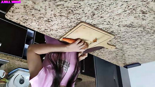 adolescent femme chaude insatisfaite est impatiente dune saucisse géante et je lui ai dit de la baiser avec la carotte dans le cul