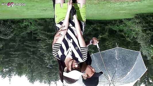 une nana asiatique sexy donne du plaisir oral au bord de la route à un homme chanceux-génial!