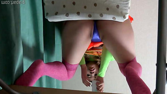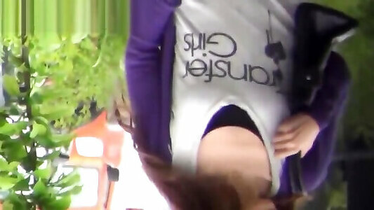 une japonaise en micro-jupe enlève ses vêtements et fait de lexercice