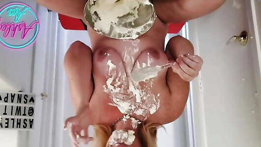 haley devient boueuse nue avec de la crème fouettée au chocolat