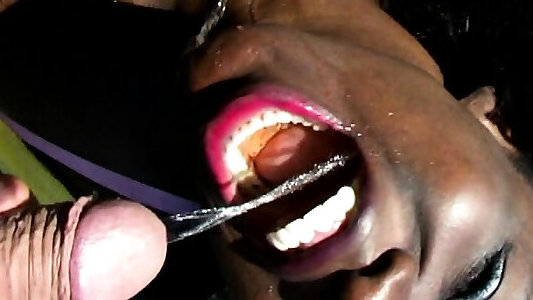 une folle africaine fait tourner sa langue autour dun énorme sifflet de boeuf