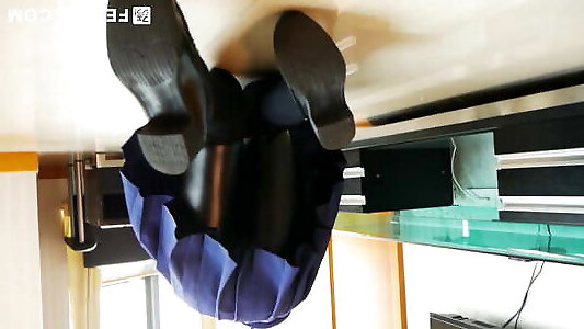 fétichisme des pieds. branlé en collants et sperme sur les jambes
