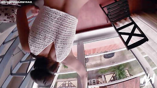 marval-belle-mère et beau-fils exhibitionnistes se montrent à travers une grande fenêtre aux passants à quel point ils baisent