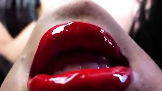 blondie mega-slut sest tapé une combinaison en latex rouge et des chaussures de couleur foncée